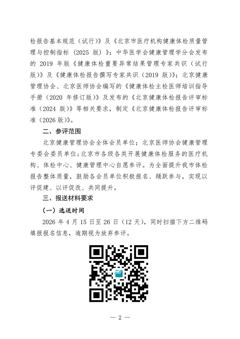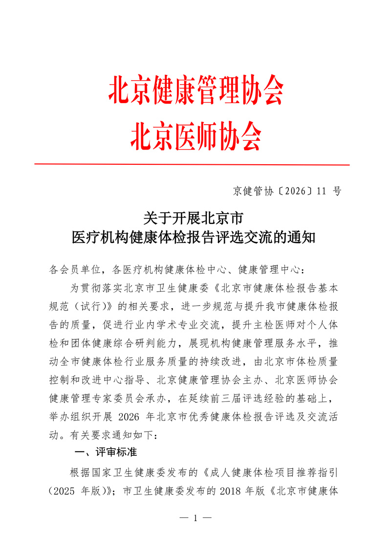 关于开展北京市医疗机构健康检报告评选交流的通知