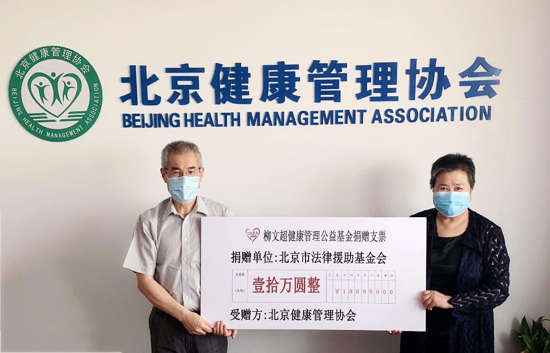 2020年5月29日(周五)下午2:30,在北京健康管理协会正式举行“柳文超健康管理公益基金”设立暨捐赠仪式,仪式由北京市法律援助基金会副秘书长高令春主持,市法援基金会副理事长、北京硅谷置业投资管理有限公司董事长郭俊琴、市法援基金会秘书长谢红生、北京健康管理协会会长邱大龙、北京健康管理协会副会长、法人范苏平、北京健康管理协会党支部书记杜兵、北京健康管理协会秘书长周胜利等出席。