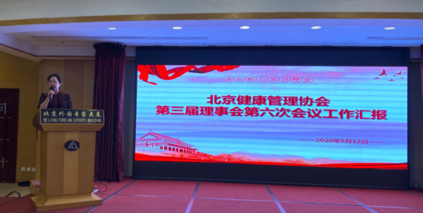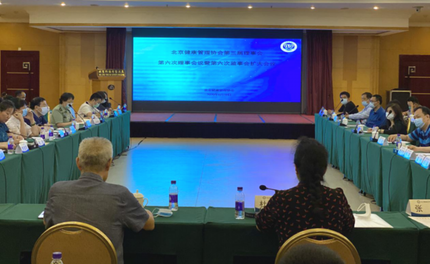 依据北京健康管理协会协会章程,2020年8月18日在北京外国专家大厦会议室召开了北京健康管理协会第三届理事会常务理事会扩大会议(第三届第六次常务理事会会议、第三届第六次监事会会议、第三届第六次理事会会议)。北京健康管理协会会长、副会长、监事会等52位理事会成员参加会议,党支部书记、健康管理专家委员会主任委员及相关专家、副秘书长、分支机构主要负责人等列席了此次会议。