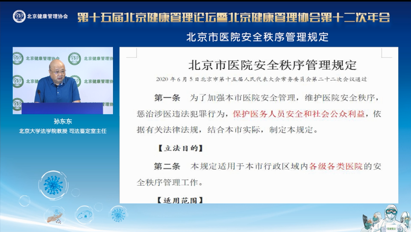 报告主题:《北京市医院安全秩序管理规定》解析主讲:孙东东北京大学法学院教授、司法鉴定室主任