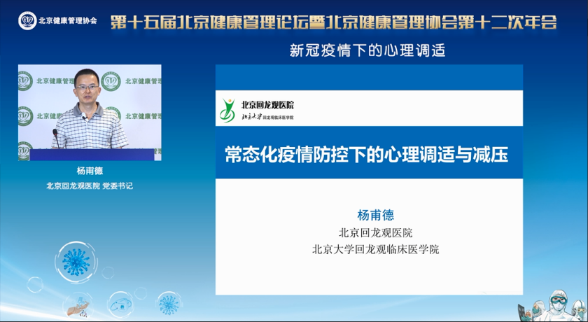 报告主题:《常态化疫情防控下的心理调适与减压》主讲:北京回龙观医院院长杨甫德