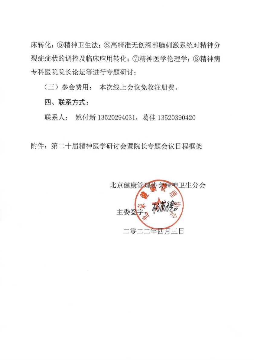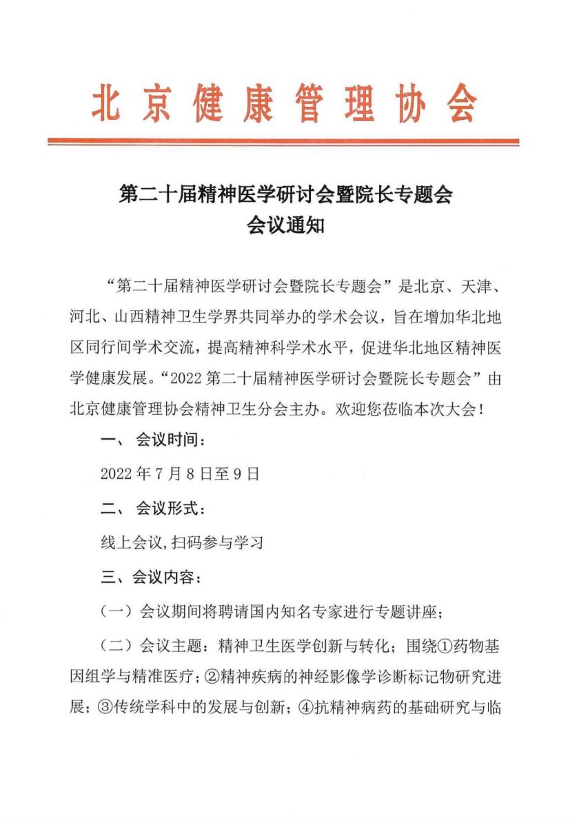 第二十届精神医学研讨会暨院长专题会会议通知