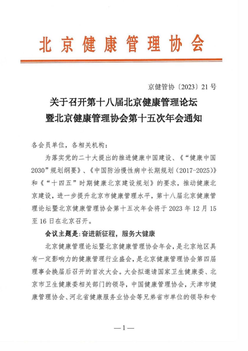 关于召开第十八届北京健康管理论坛暨北京健康管理协会第十五次年会通知