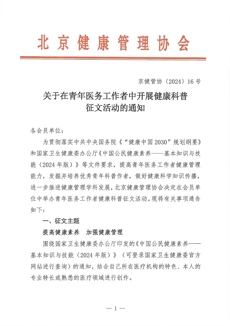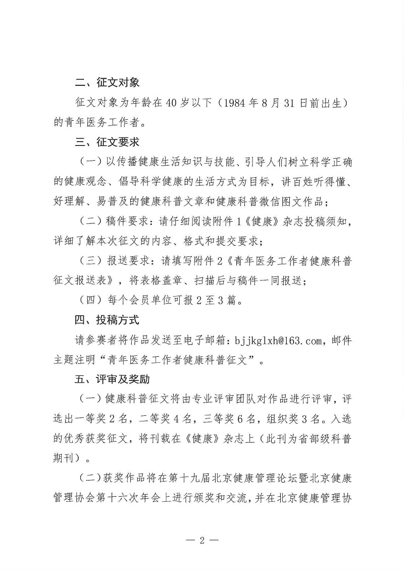 关于在青年医务工作者中开展健康科普征文活动的通知