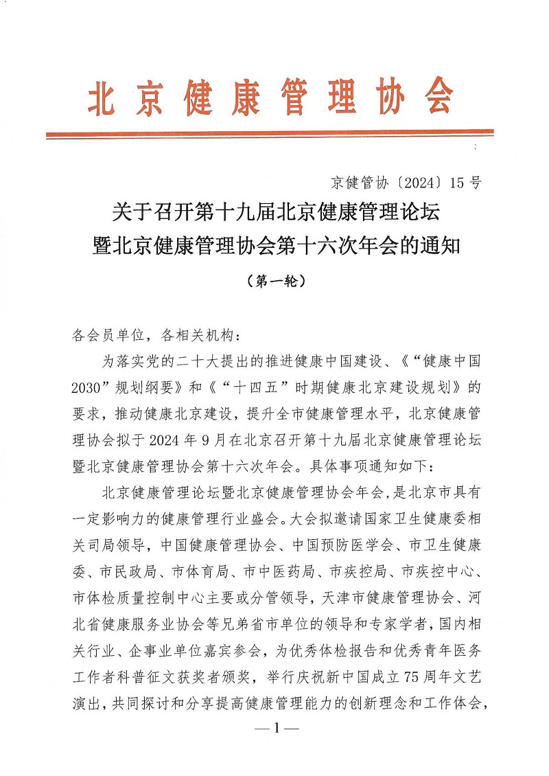 关于召开第十九届北京健康管理论坛暨北京健康管理协会第十六次年会的通知