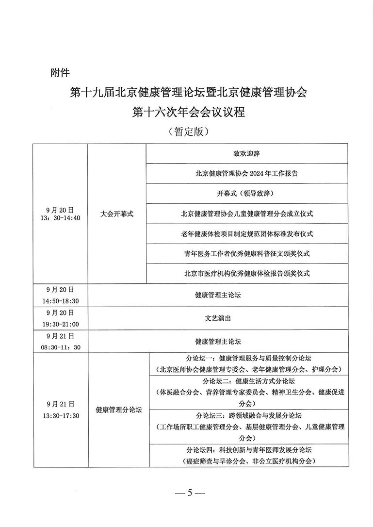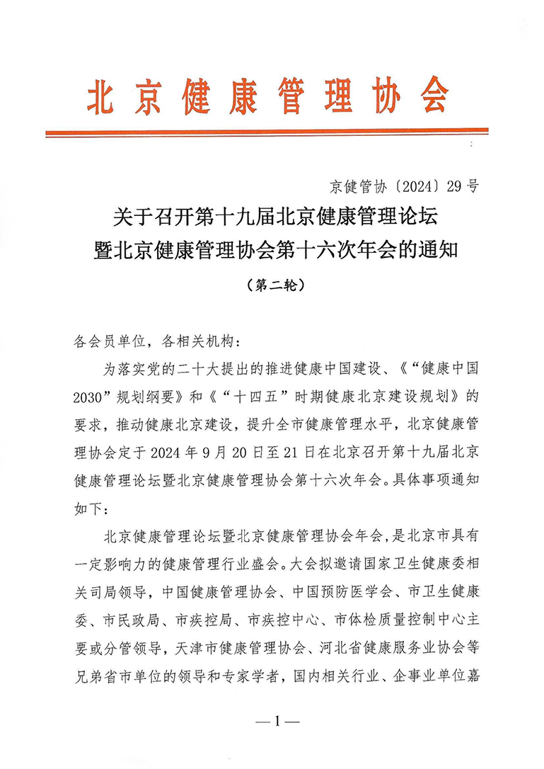 关于召开第十九届北京健康管理论坛暨北京健康管理协会第十六次年会的通知