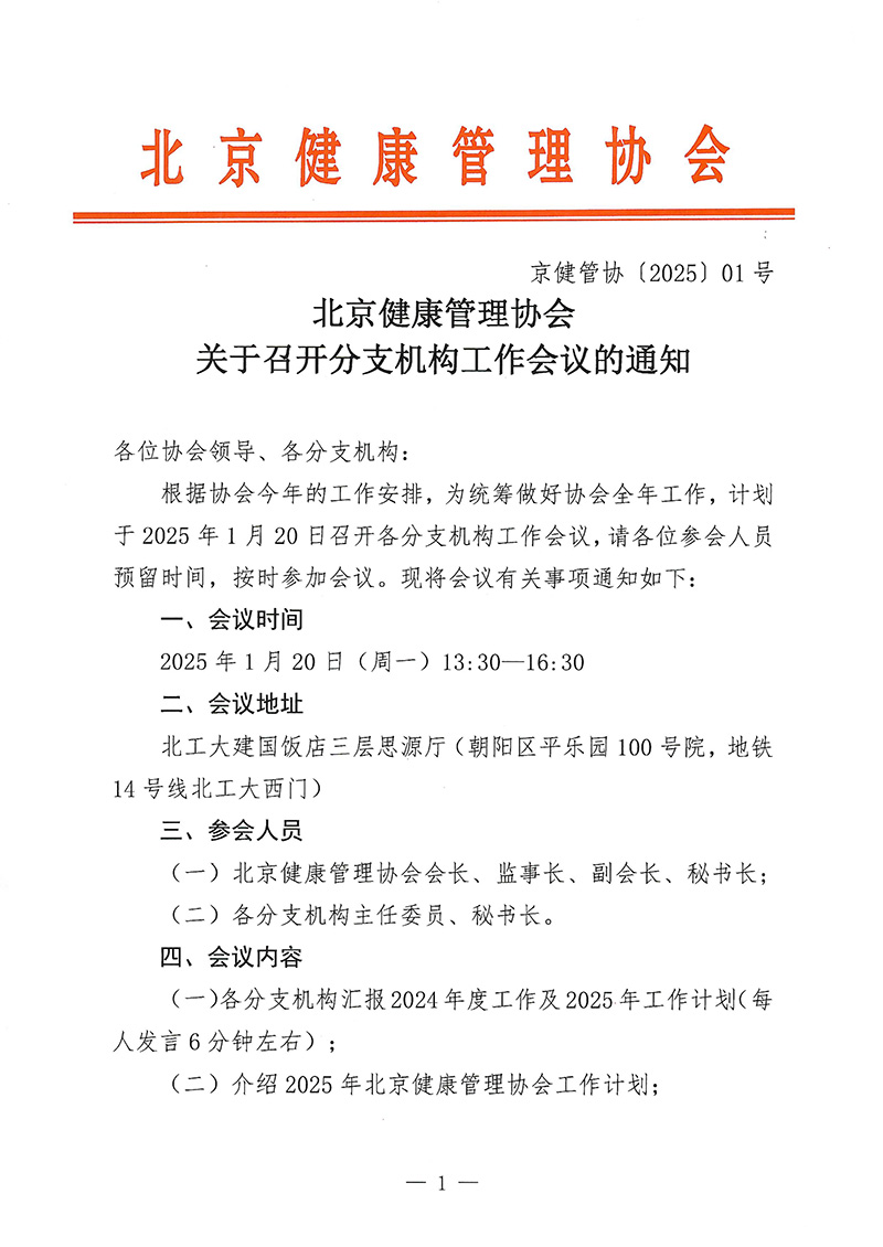 北京健康管理协会关于召开分支机构工作会议的通知