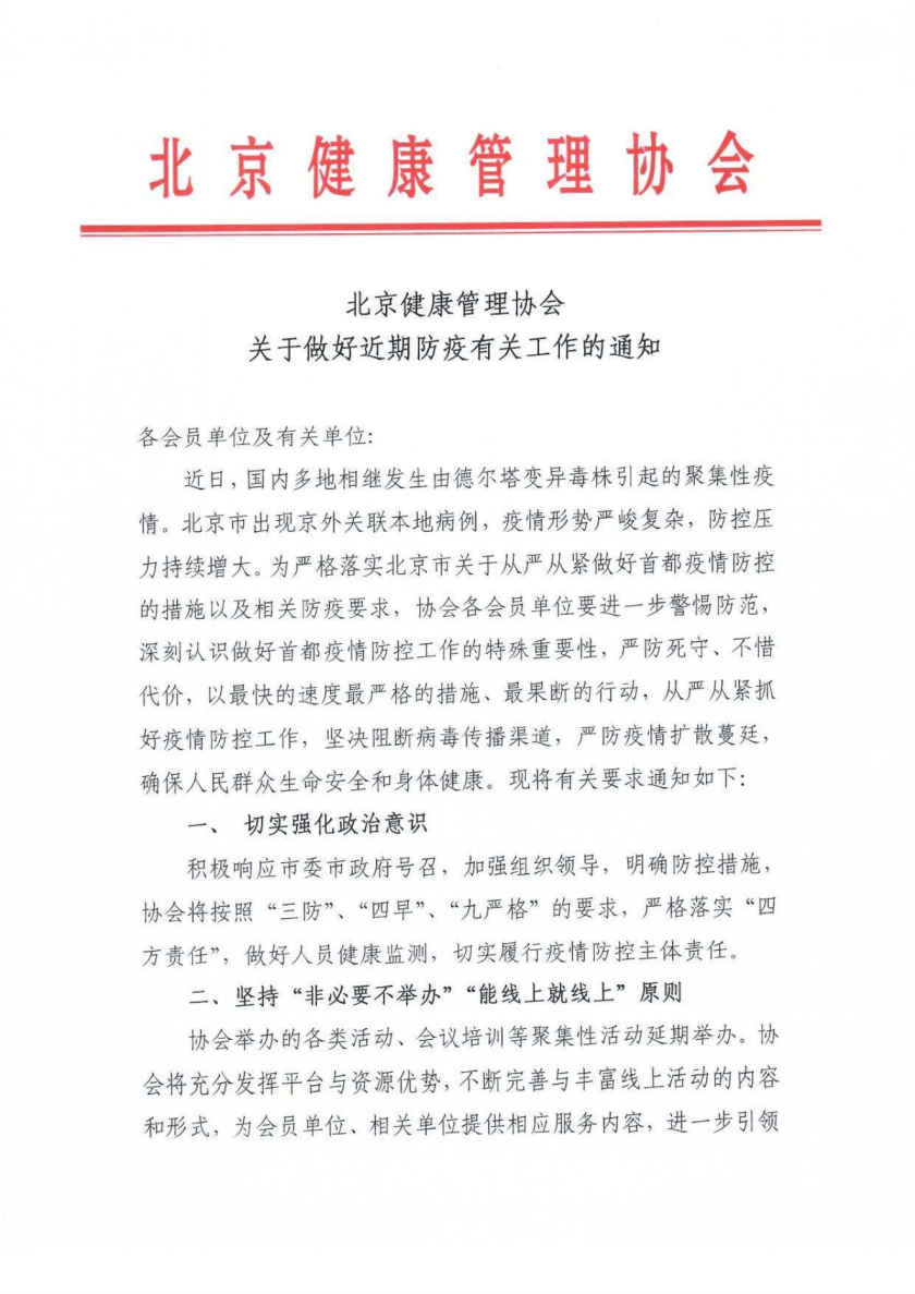协会关于做好近期防疫有关工作的通知
