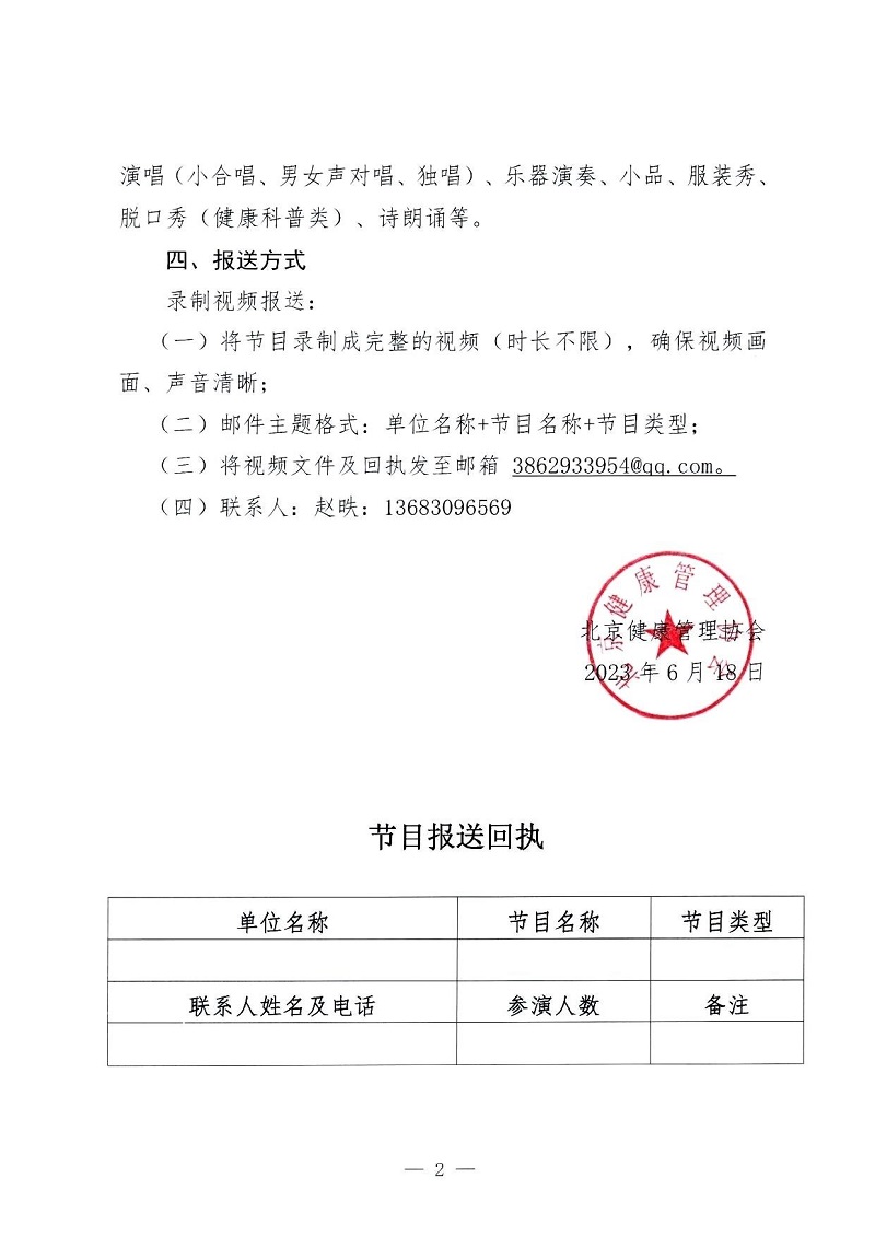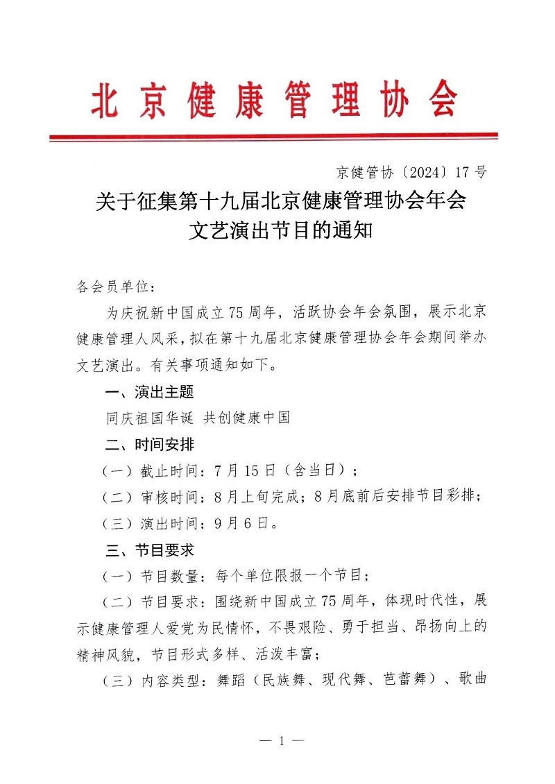 关于征集第十九届北京健康管理协会年会文艺演出节目的通知