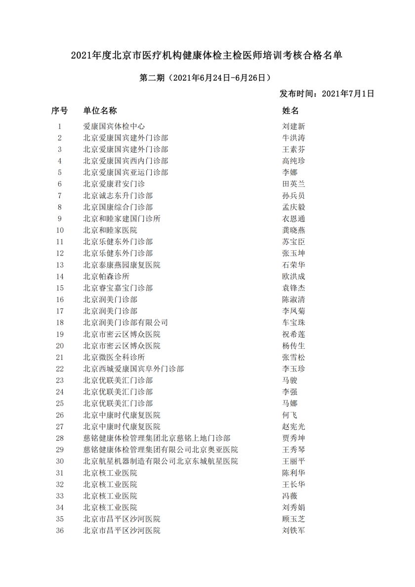 2021年第一、二期主检医师培训考核合格名单