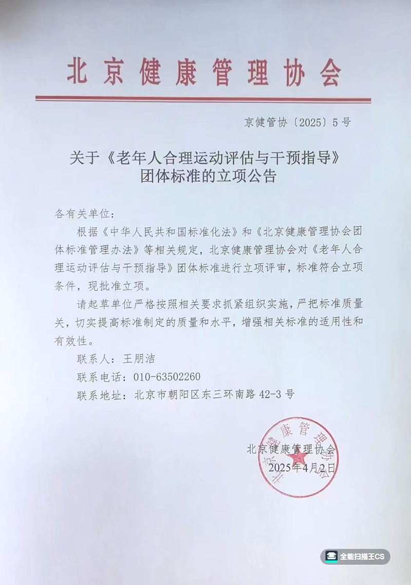 关于《老年人合理运动评估与干预指导》 团体标准的立项公告