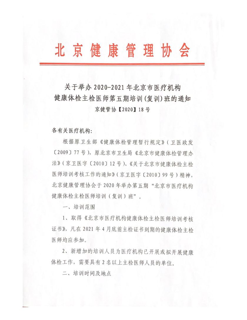 2020年第五期主检医师培训通知