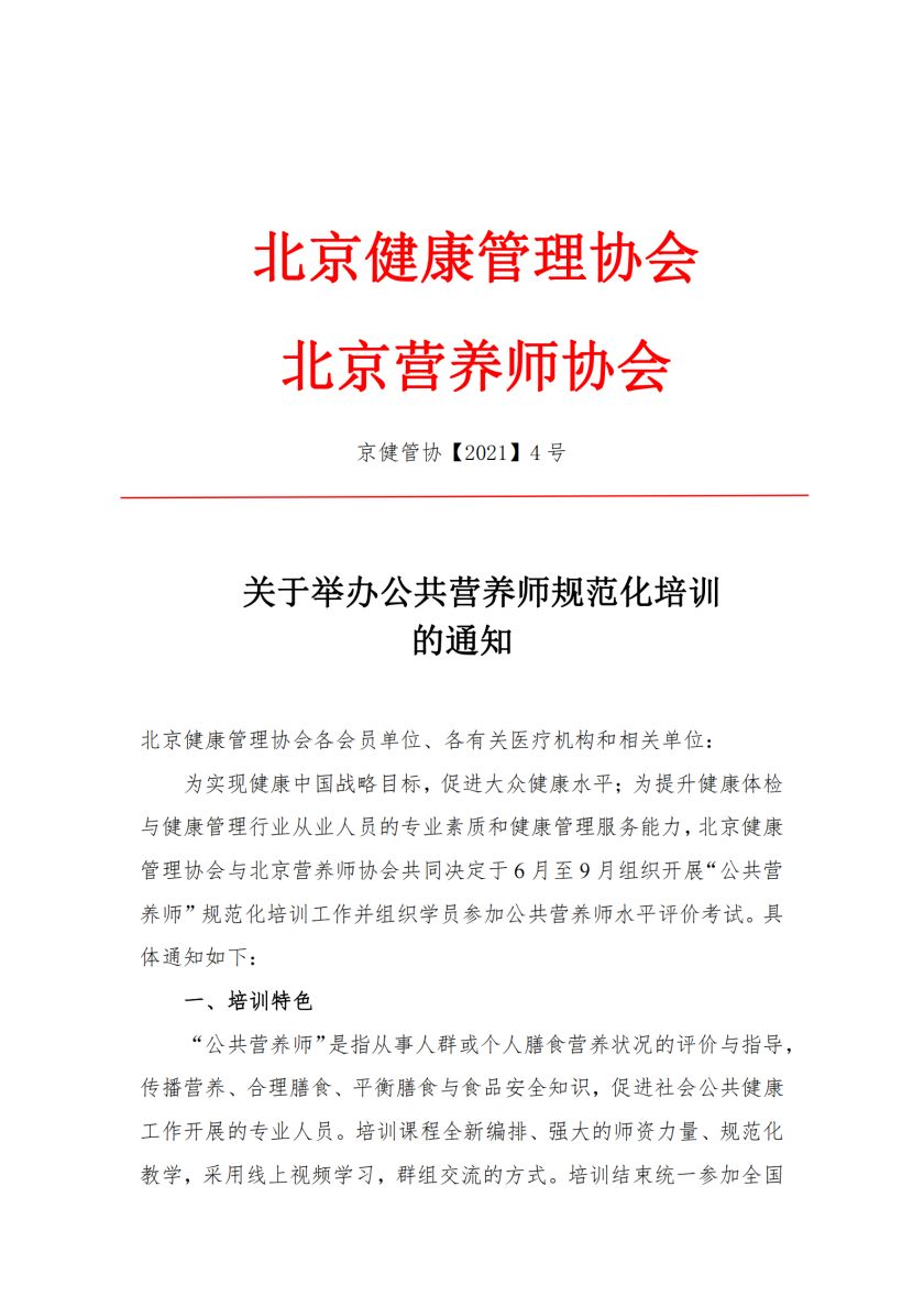 关于举办公共营养师规范化培训的通知