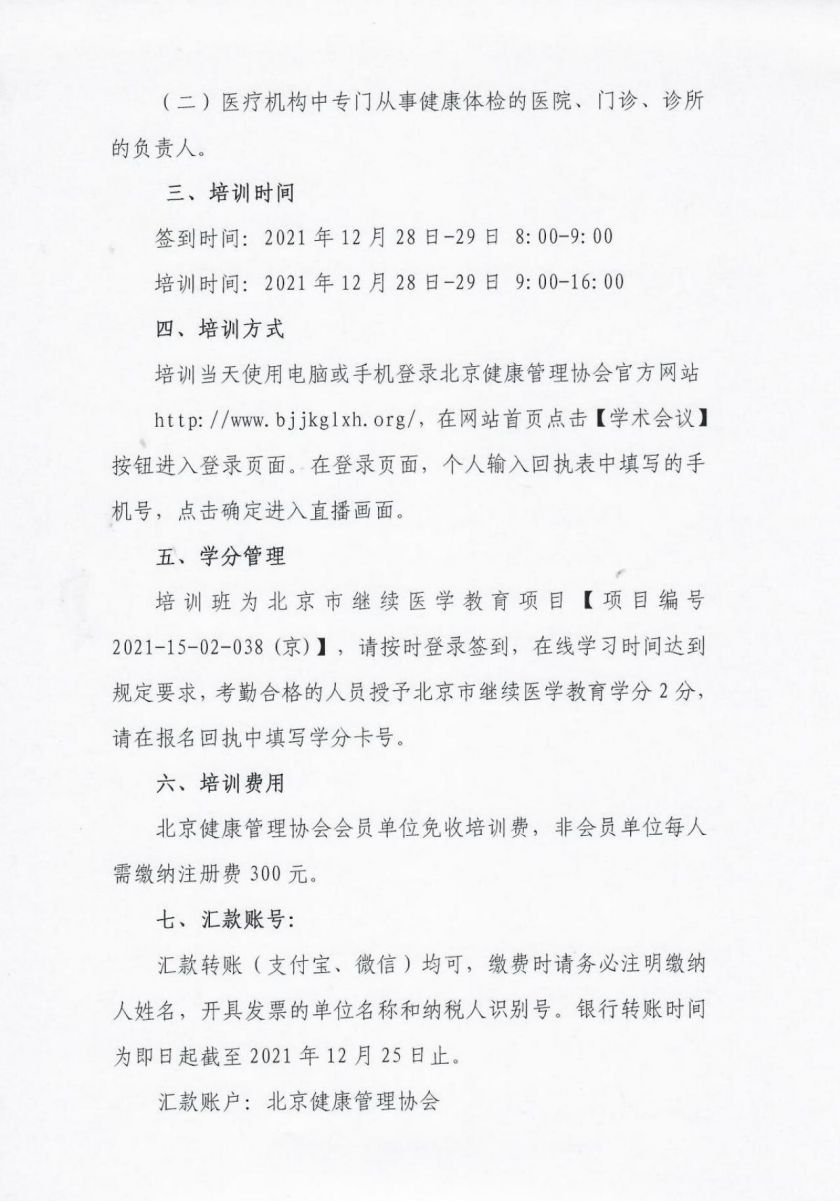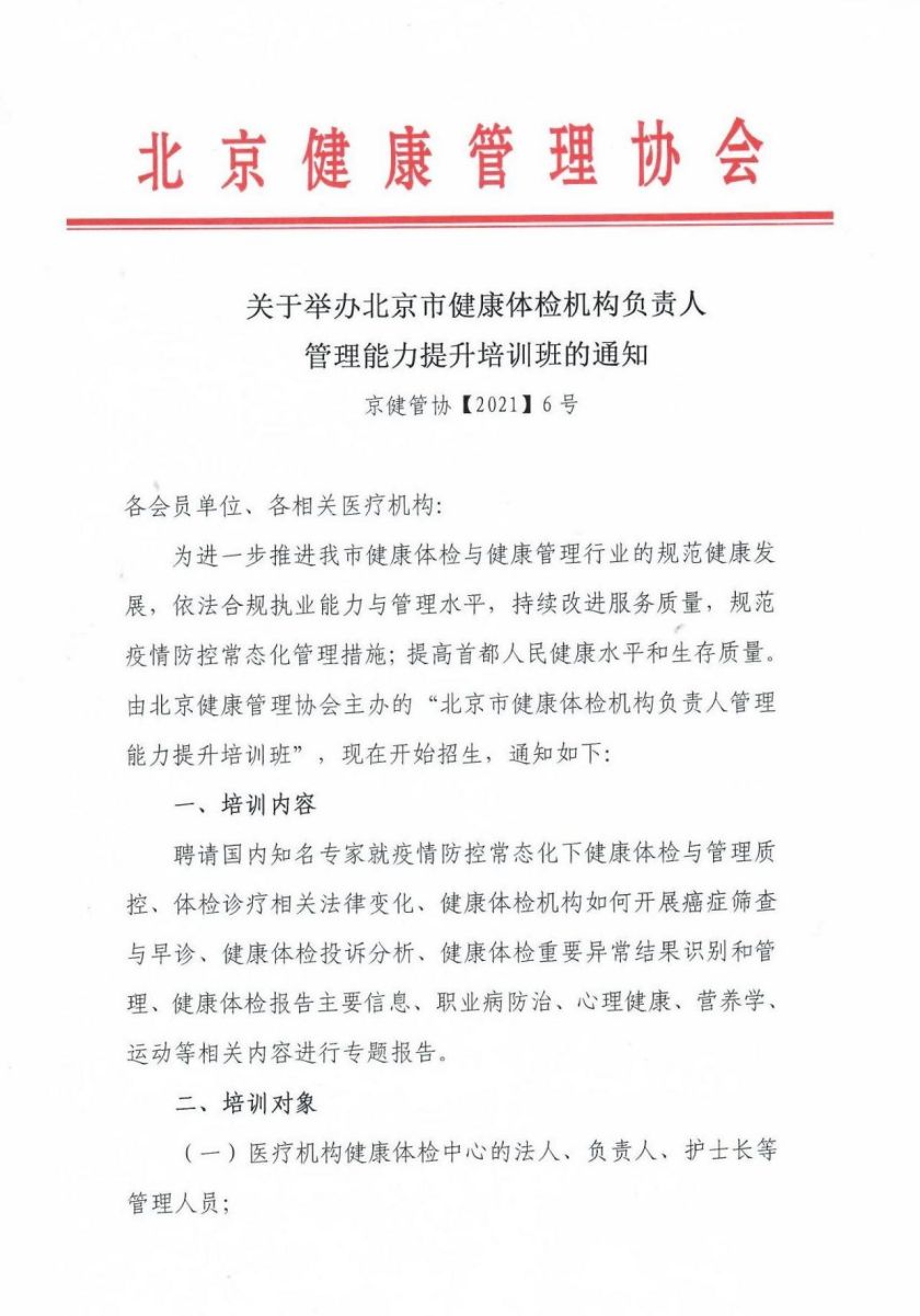 北京市健康体检机构负责人管理能力提升培训班(会员单位填报)链接:https://www.wenjuan.com/s/UZBZJv4THG/
