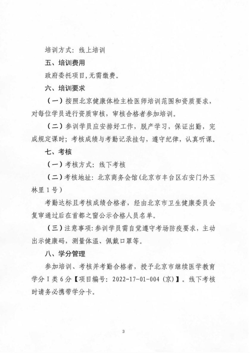 2022年北京市医疗机构健康体检主检医师培训(复训)班的通知