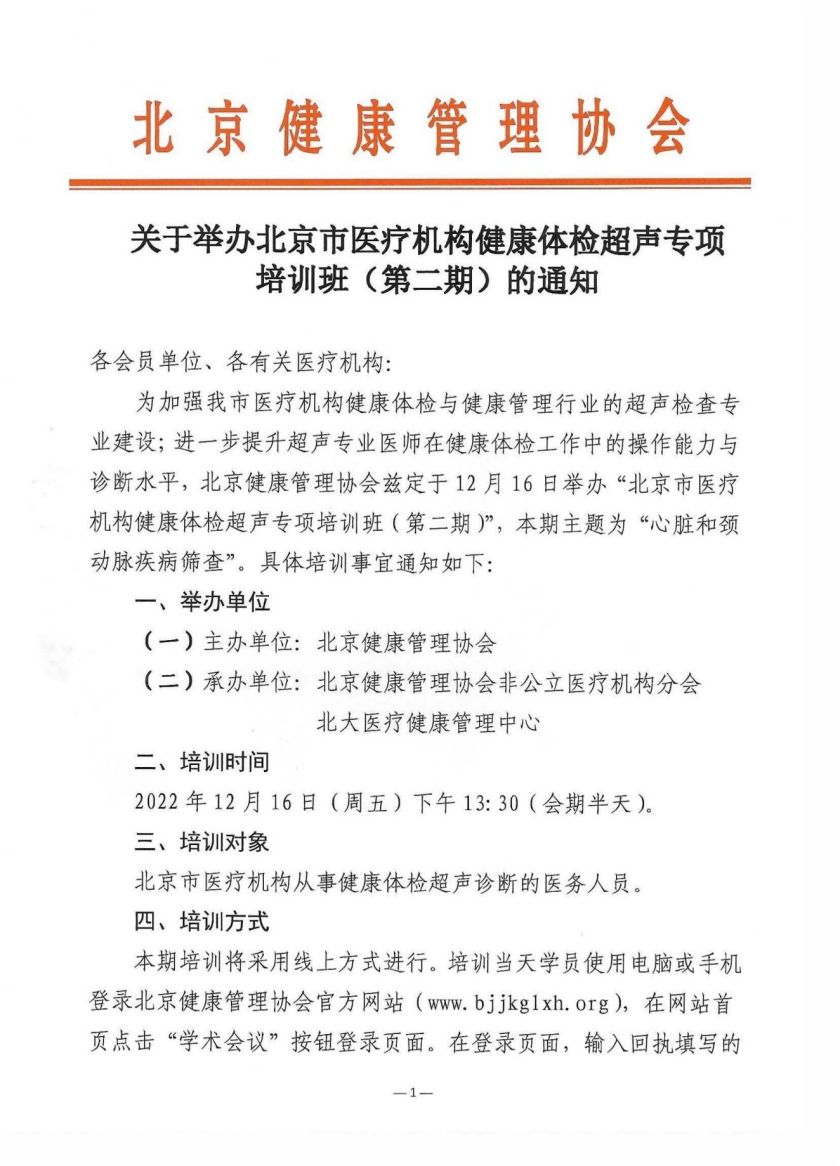 北京市医疗机构健康体检与癌症筛查超声专项培训班(第二期)-会议通知