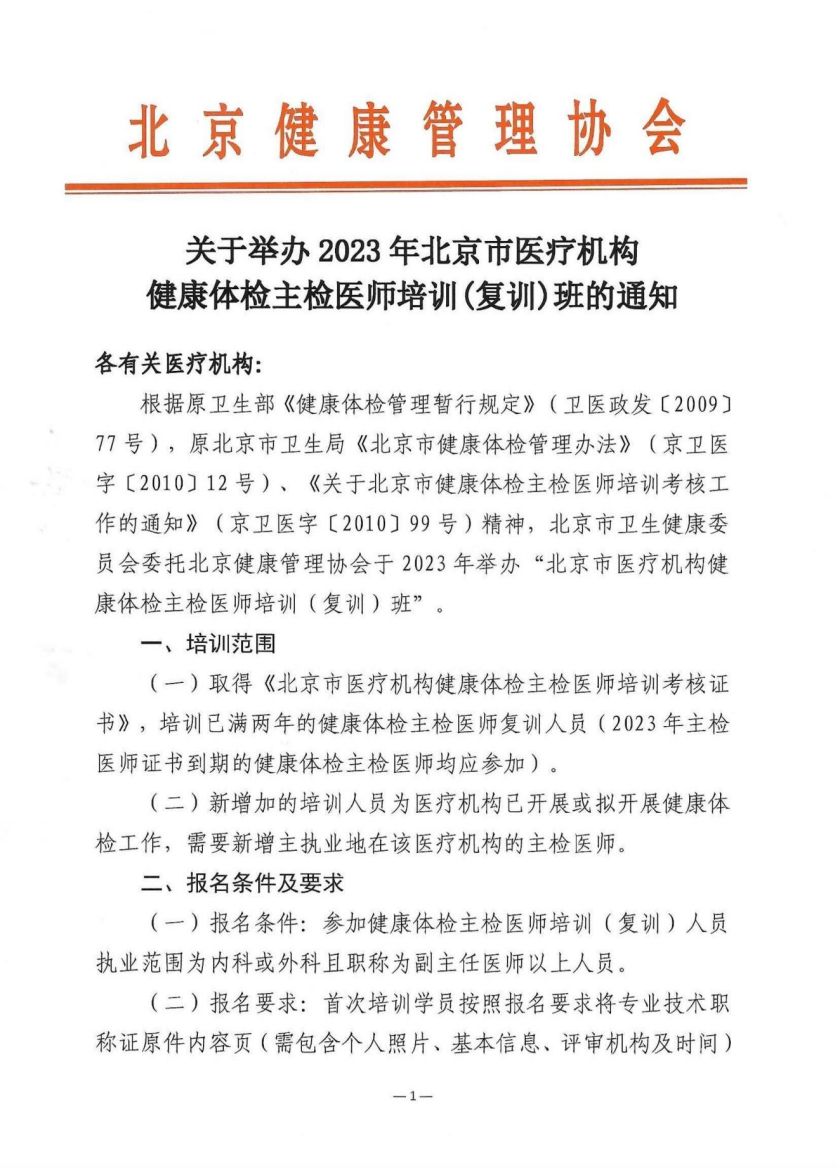 2023年主检医师培训通知