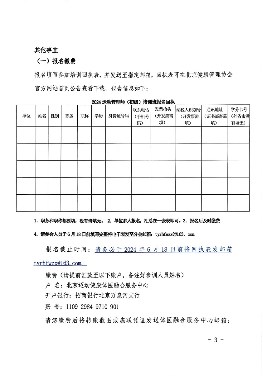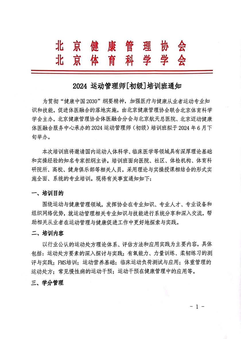 2024运动管理师初级培训班通知第二轮