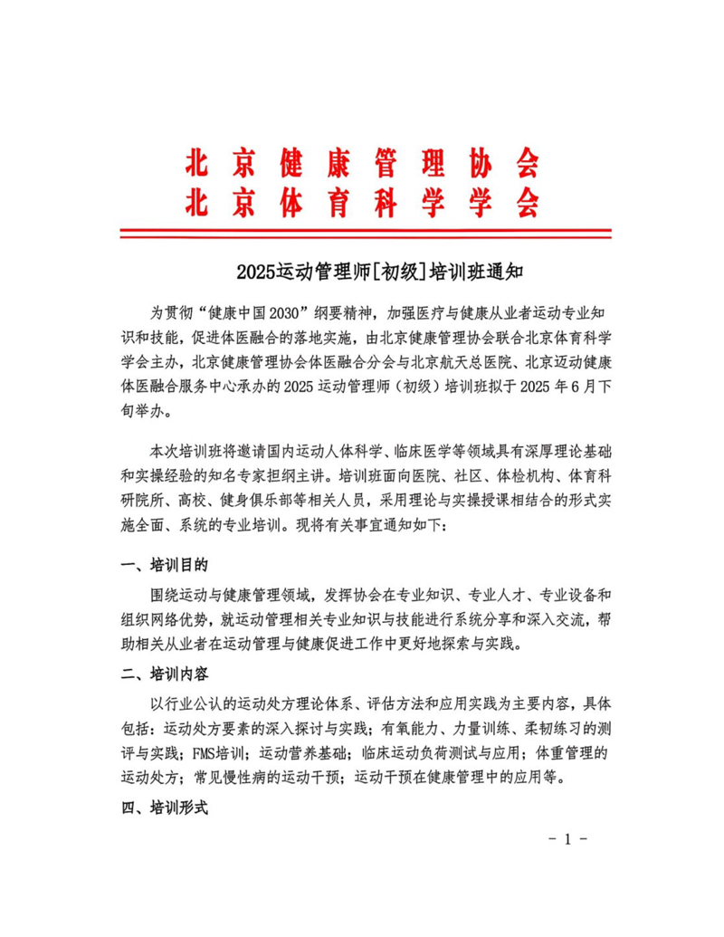 2025运动管理师[初级]培训班通知