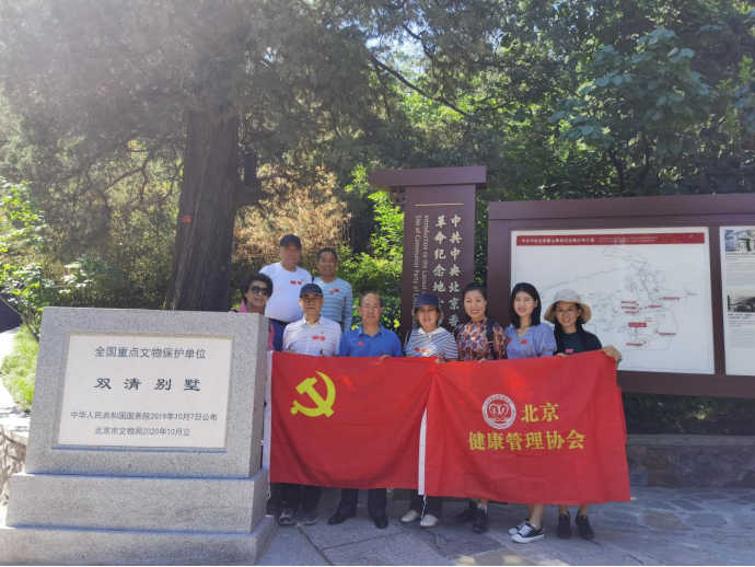 为庆祝中国共产党成立 100 周年,学习百年党史,发扬红色传统,传承红色基因,进一步激发社会组织党组织的凝聚力和影响力,增强社会组织广大党员光荣感、使命感和责任感,团结引领社会组织广大党员跟随红色历史的脚步,更加奋发有为地推动首都高质量发展贡献力量,按照北京市社会事业领域行业协会联合党委工作部署和本支部工作计划,6月11日清晨,北京健康管理协会会长邱大龙、法人范苏平、党支部书记杜兵及协会全体党员和入党积极分子与联合党委李书明副书记、时占印同志一起,来到香山红色教育基地,开展了“追寻伟人足迹、不忘初心、讲奉献、做合格党员”、“百地百景薪火相传行”主题党日活动。