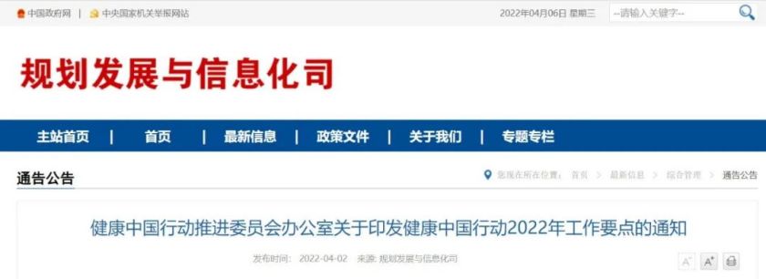 近日,健康中国行动推进委员会办公室发布《健康中国行动2022年工作要点》,要求各成员单位、有关单位结合工作实际,确保各项工作顺利开展。