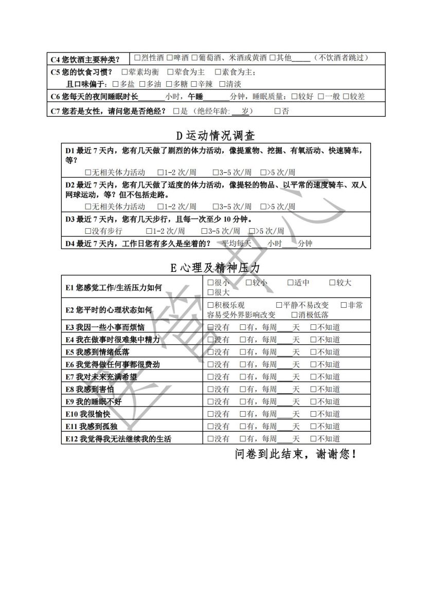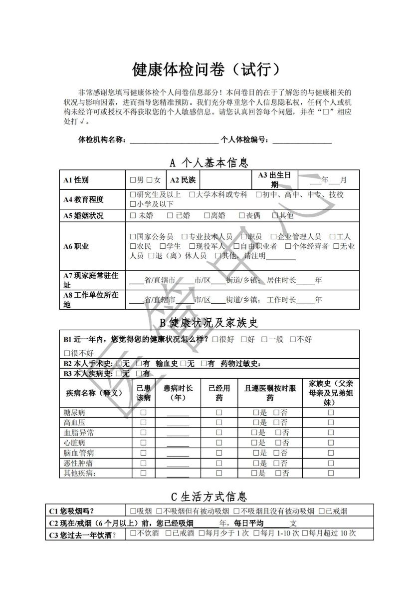 健康体检问卷(试行)