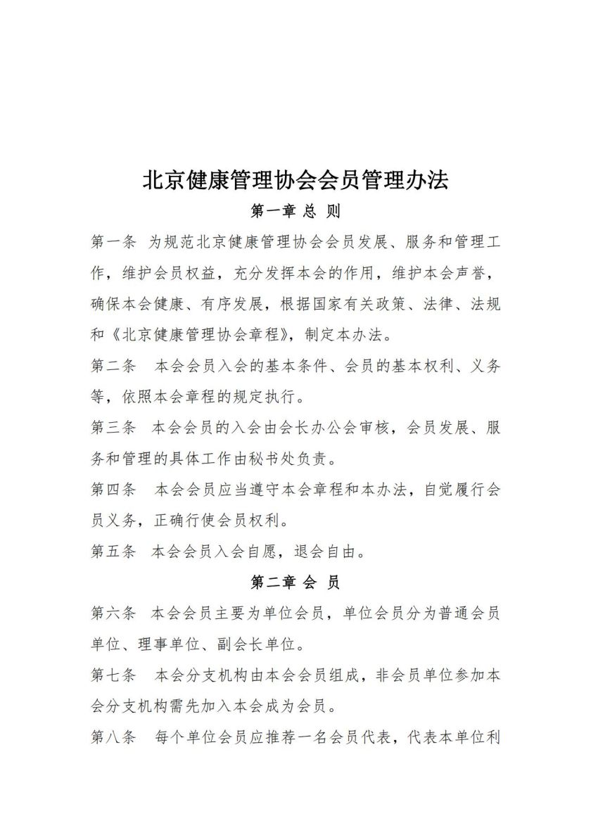 第一条 根据《民政部、财政部关于取消社会团体会费标准备案规范会费管理的通知》(民发[2014]166号)、关于进一步规范行业协会商会收费管理的意见(发改经体〔2017〕1999号)精神及《北京健康管理协会章程》的有关规定,特制定本办法。