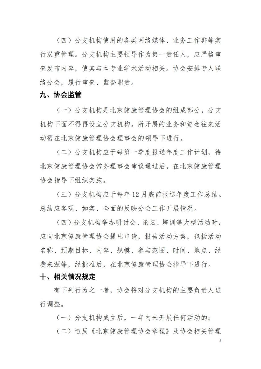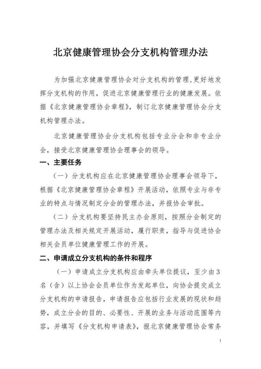 北京健康管理协会分支机构管理办法